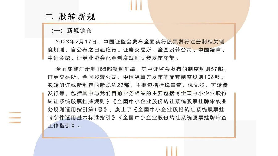 【中策培训】讲座【第168期】— 股票发行注册制度下的股转系统挂牌新规
