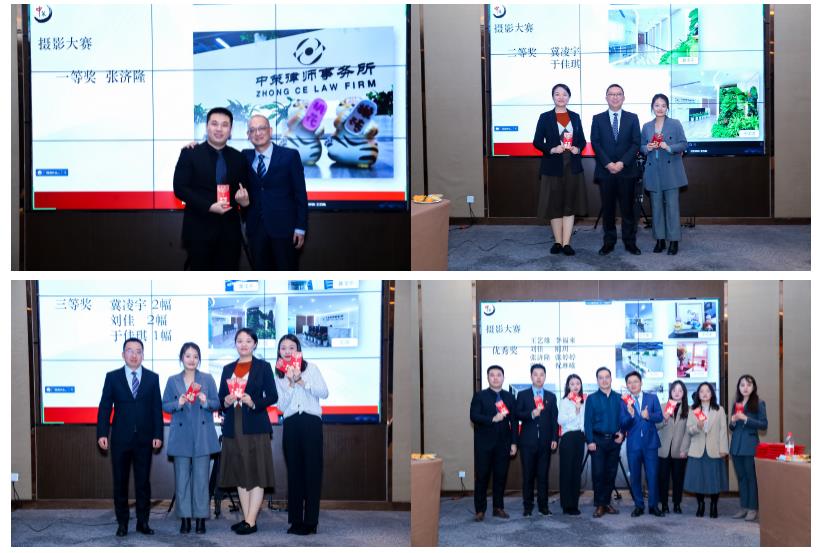 会议第四项议程,摄影大赛颁奖仪式。为展现中策律所良好面貌,本所开展面向律所全体成员的“发现律所之美”摄影大赛,并通过全体投票选举产生优秀摄影作品。其中,张济隆律师荣获一等奖,冀凌宇、于佳琪律师荣获二等奖,冀凌宇、刘佳、于佳琪律师荣获三等奖,李福来律师、王艺雄律师、刘佳、刚玥、张济隆律师、张婷婷、陈春律师、祝琳曦律师荣获优秀奖。
